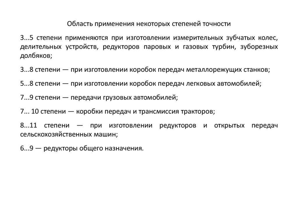 Область применения некоторых степеней точности3...5 степени применяются при изготовлении измерительных зубчатых колес,