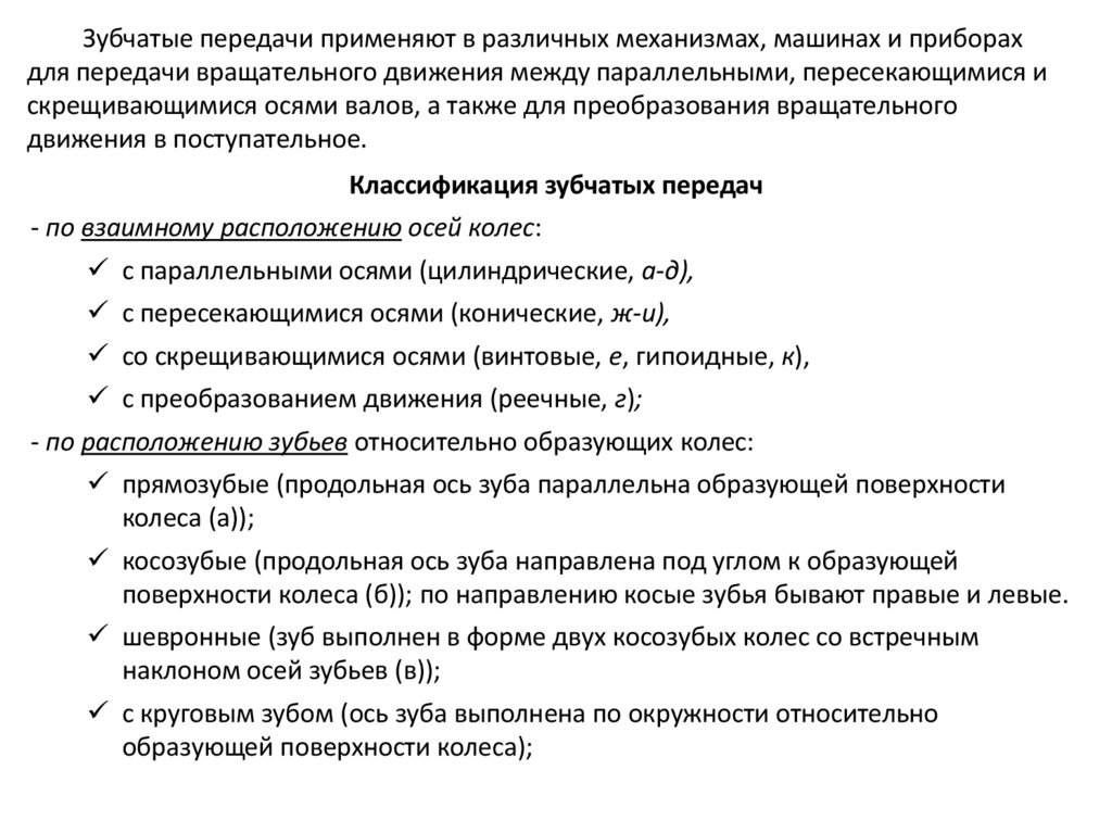Зубчатые передачи применяют в различных механизмах, машинах и приборахдля передачи вращательного движения между параллельными, пересекающимися и