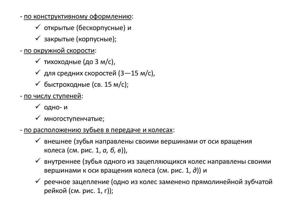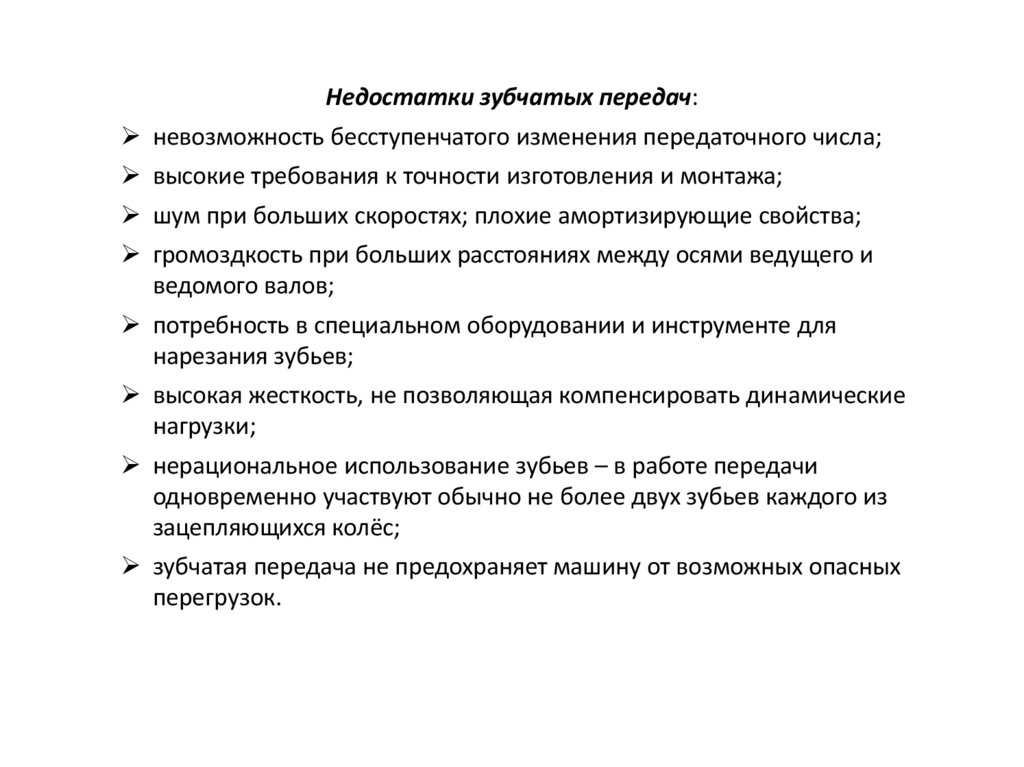 Недостатки зубчатых передач:невозможность бесступенчатого изменения передаточного числа;