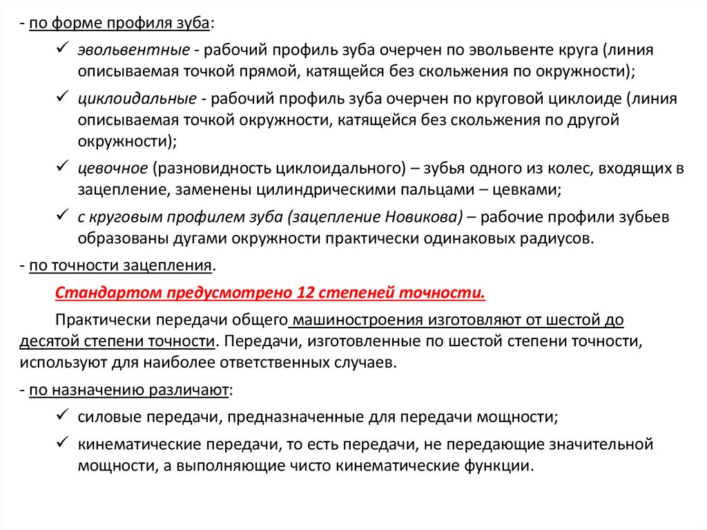десятой степени точности. Передачи, изготовленные по шестой степени точности,