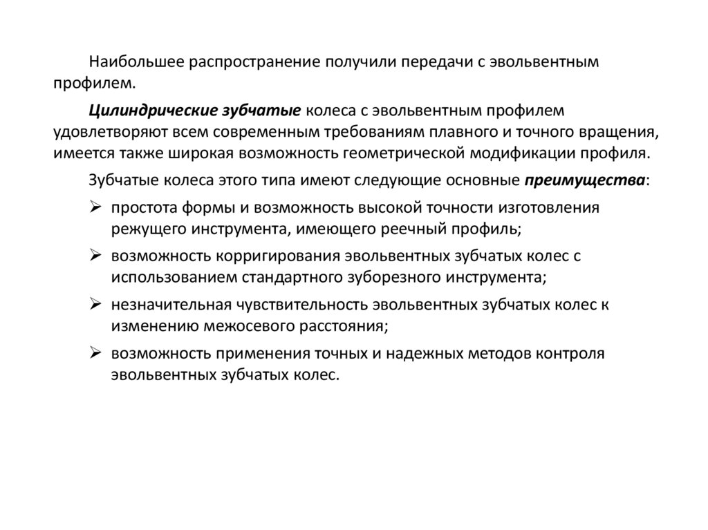 Наибольшее распространение получили передачи с эвольвентнымпрофилем.