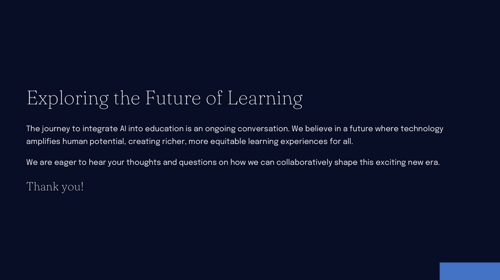 Exploring the Future of LearningThe journey to integrate AI into education is an ongoing conversation. We believe in a future where technology