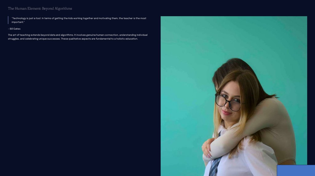 The Human Element: Beyond Algorithms“Technology is just a tool. In terms of getting the kids working together and motivating them, the teacher is the most