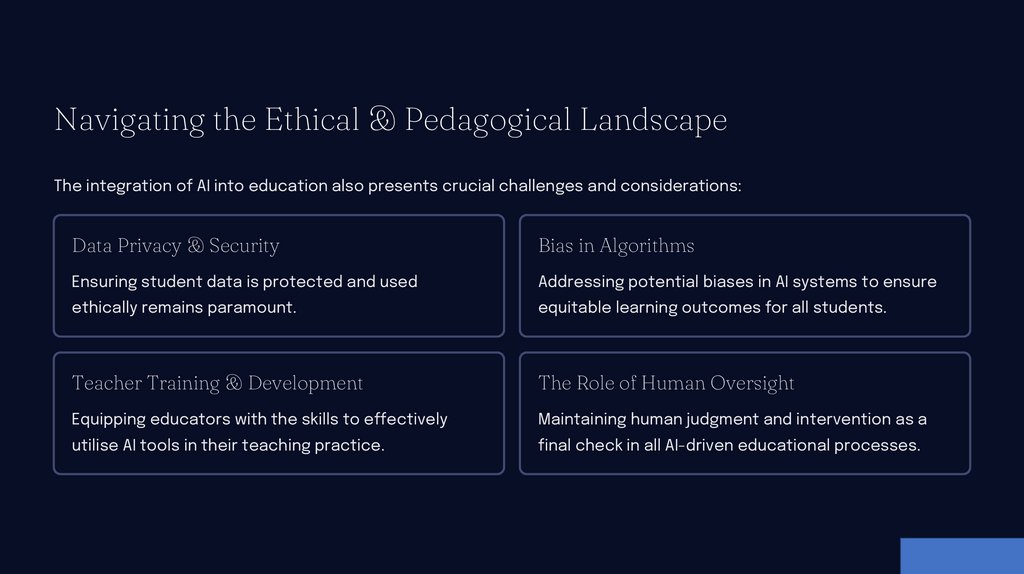 Navigating the Ethical & Pedagogical LandscapeThe integration of AI into education also presents crucial challenges and considerations: