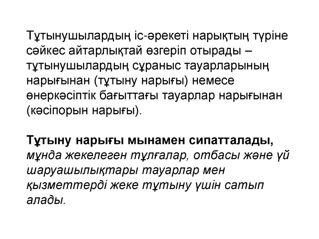 Тұтынушылардың іс-әрекеті нарықтың түрінесәйкес айтарлықтай өзгеріп отырады –