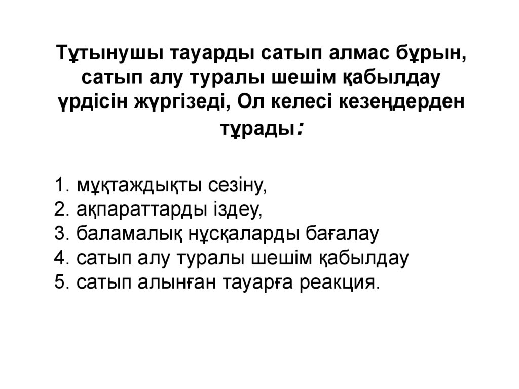 Тұтынушы тауарды сатып алмас бұрын,сатып алу туралы шешім қабылдау