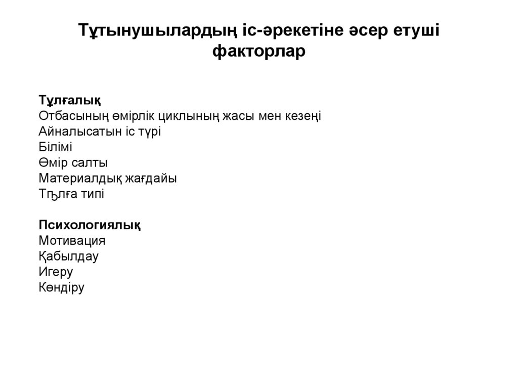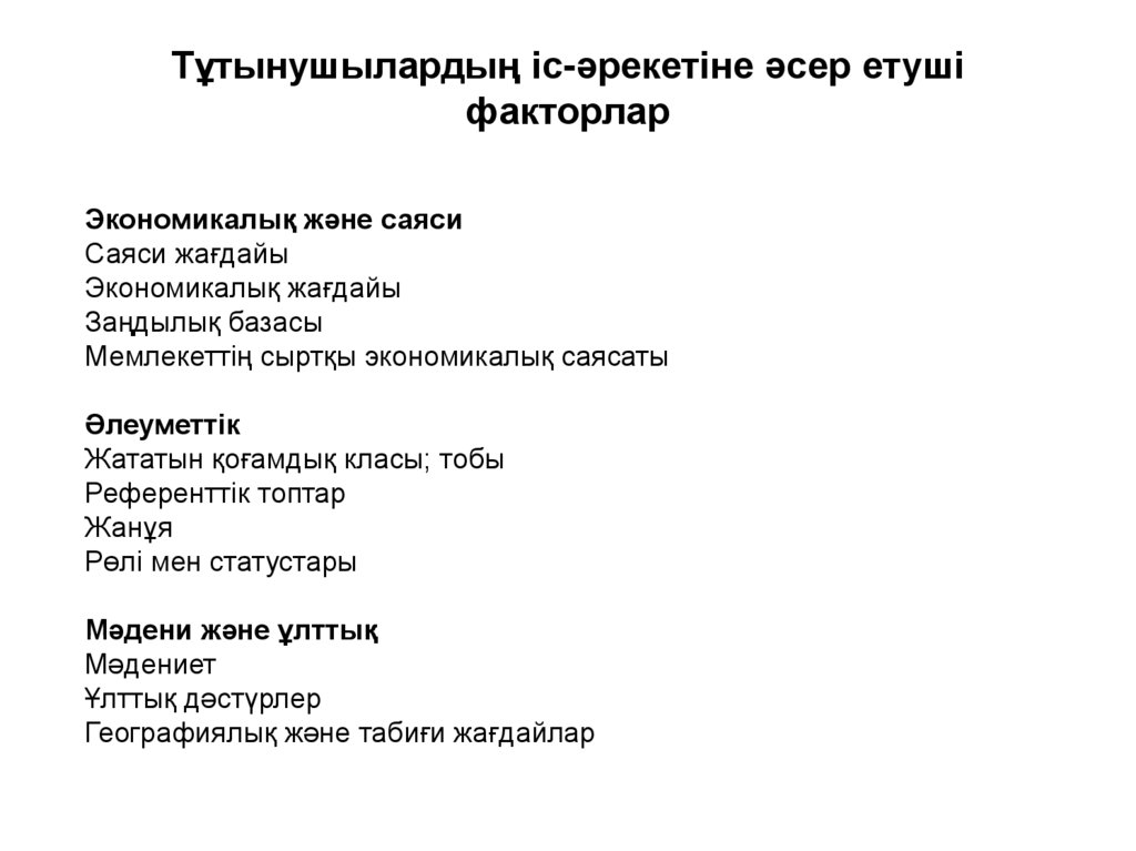 Тұтынушылардың іс-әрекетіне әсер етушіфакторлар