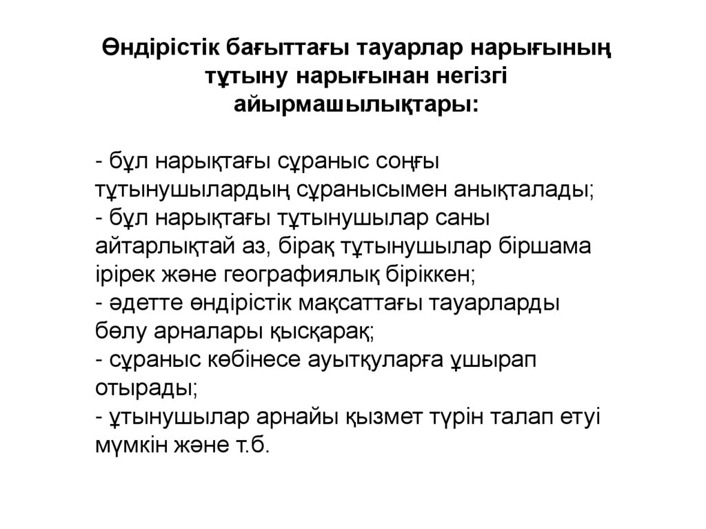 Өндірістік бағыттағы тауарлар нарығыныңтұтыну нарығынан негізгі