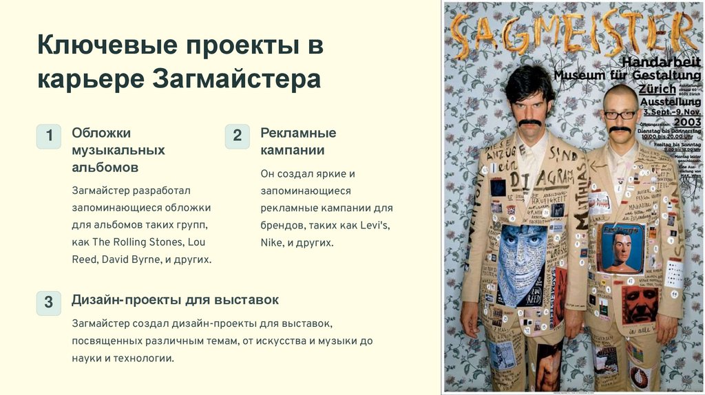 В 1 9 9 3 году Загмайстер основал собственную студию Sagmeister &