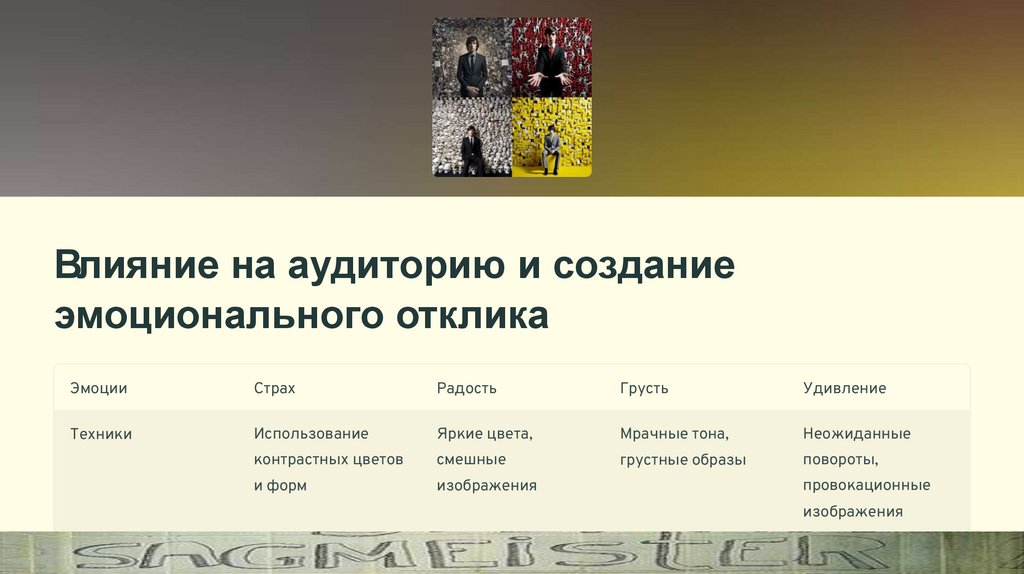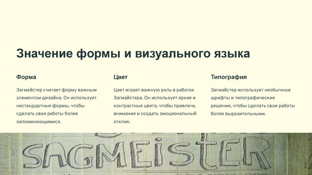 привлекают внимание, но и вызывают глубокие эмоции. Загмайстер является