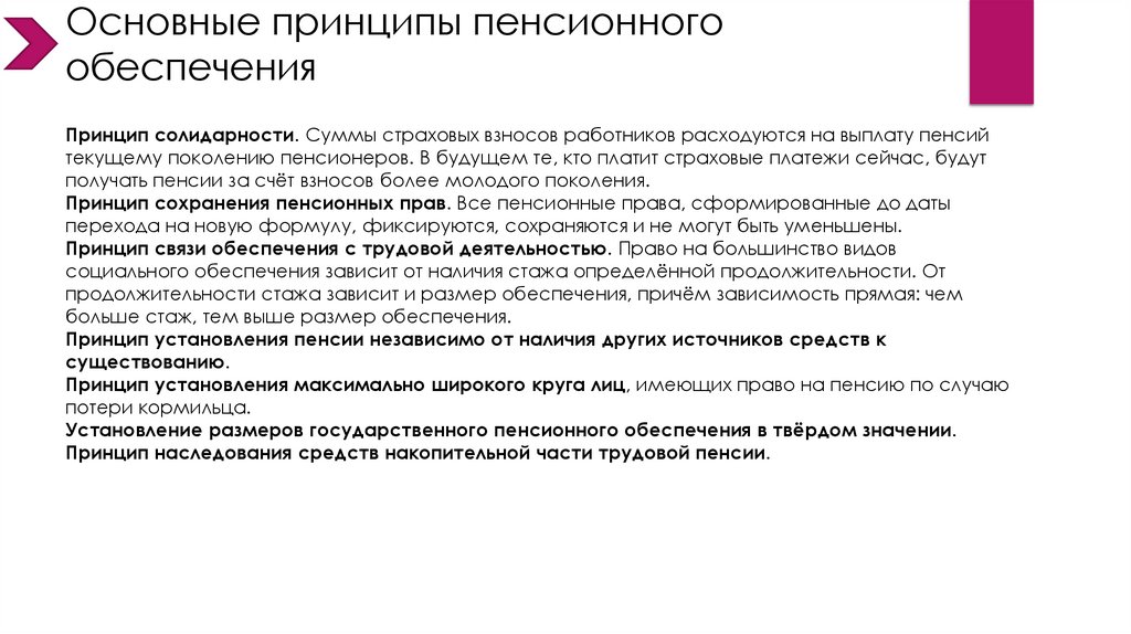Основные принципы пенсионногообеспечения