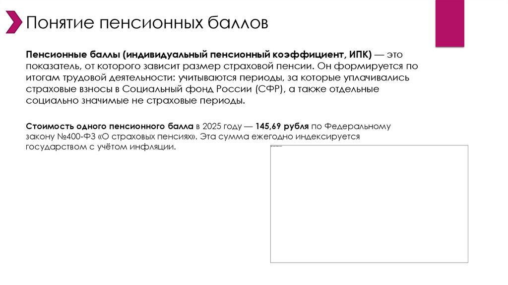 Понятие пенсионных балловПенсионные баллы (индивидуальный пенсионный коэффициент, ИПК) — это