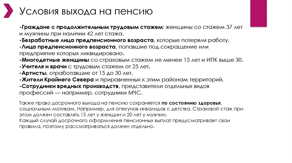 -обеспечивает доступ к досрочному выходу на отдых и дополнительным