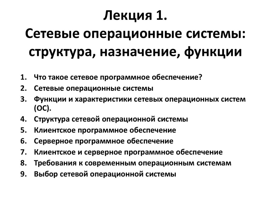 1. Лекция 1. Сетевые операционные системы: структура, назначение, функции