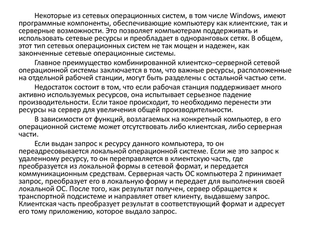 используют клиент-серверную, либо одноранговую архитектуру. Компоненты NOS располагаются на всех рабочих станциях,