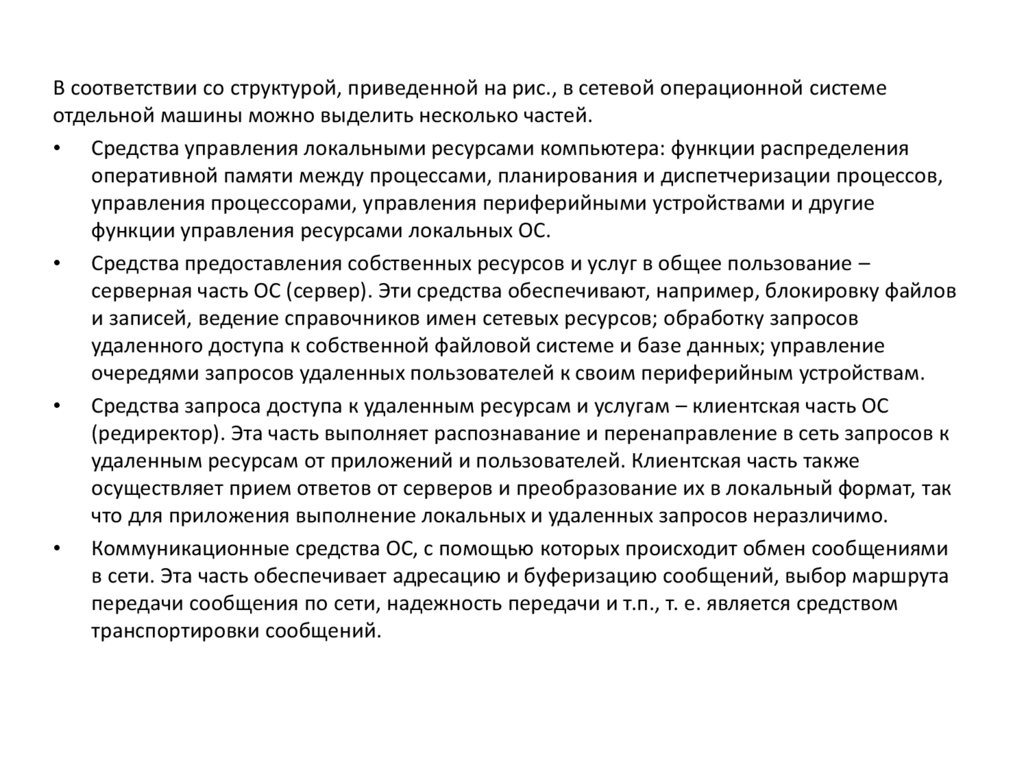 В соответствии со структурой, приведенной на рис., в сетевой операционной системеотдельной машины можно выделить несколько частей.