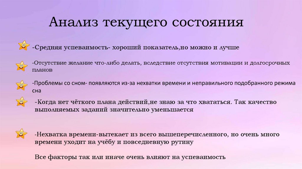 Анализ текущего состояния-Средняя успеваимость- хороший показатель,но можно и лучше