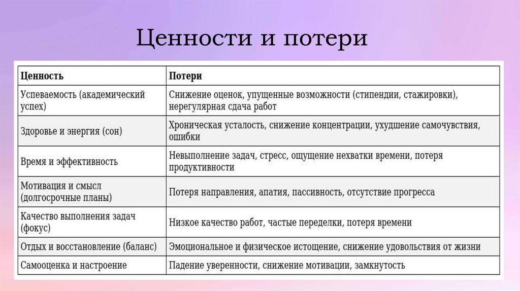 Ценности и потери5.