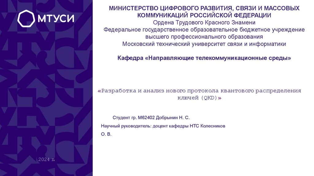 1. МИНИСТЕРСТВО ЦИФРОВОГО РАЗВИТИЯ, СВЯЗИ И МАССОВЫХ КОММУНИКАЦИЙ РОССИЙСКОЙ ФЕДЕРАЦИИ Ордена Трудового Красного Знамени
