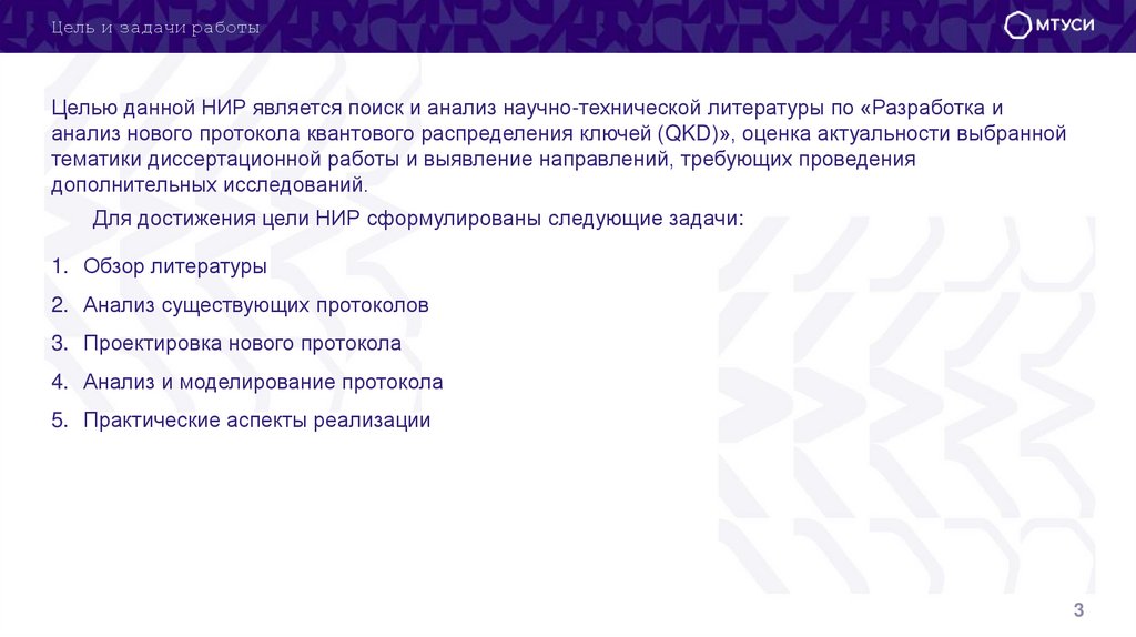Цель и задачи работыЦелью данной НИР является поиск и анализ научно-технической литературы по «Разработка и