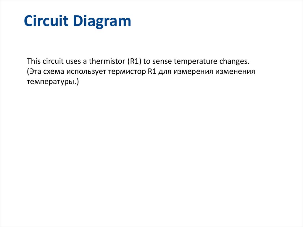 Circuit DiagramThis circuit uses a thermistor (R1) to sense temperature changes.