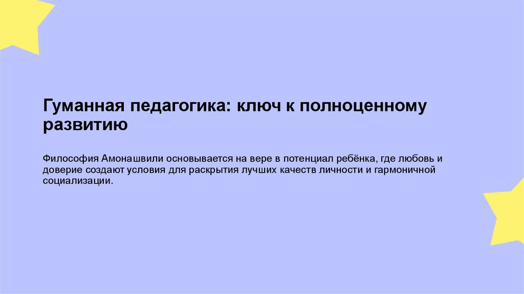 Философия Амонашвили основывается на вере в потенциал ребёнка, где любовь и