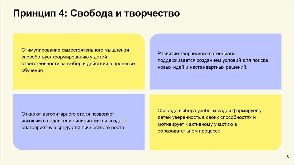 Принцип 4: Свобода и творчествоСтимулирование самостоятельного мышления