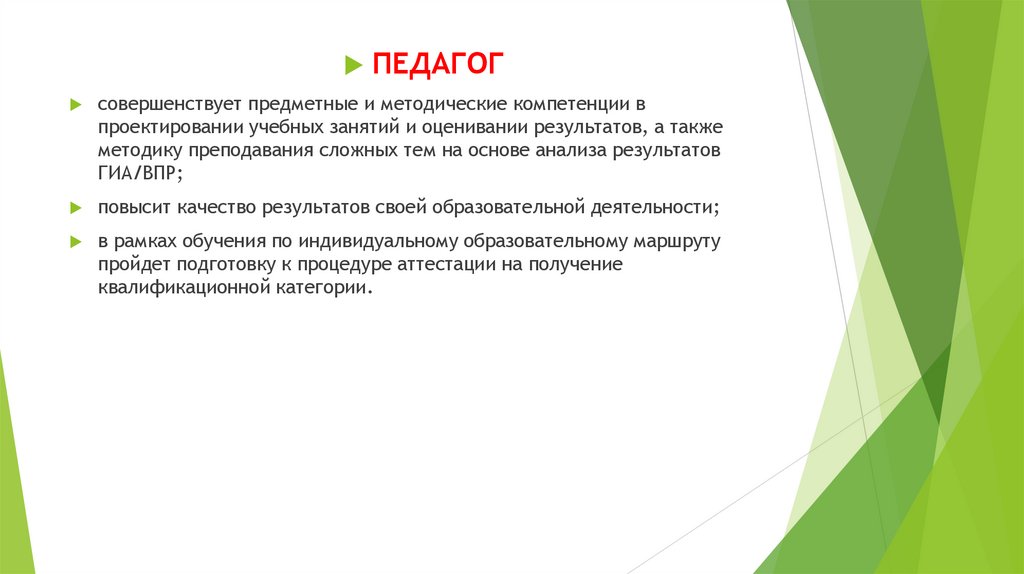 ПЕДАГОГсовершенствует предметные и методические компетенции в