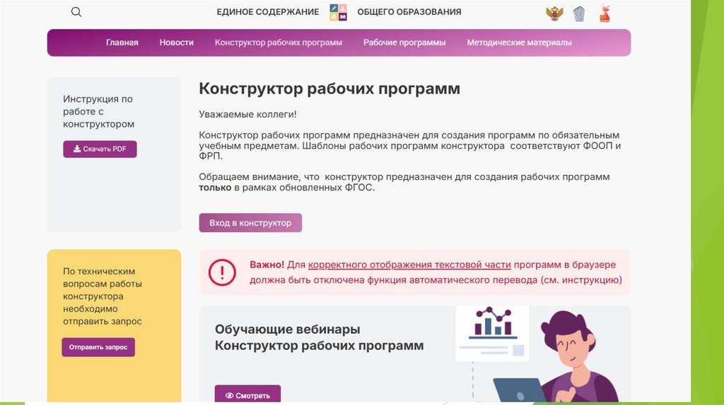 Перед первым использованием «Конструктора рабочих программ поучебным