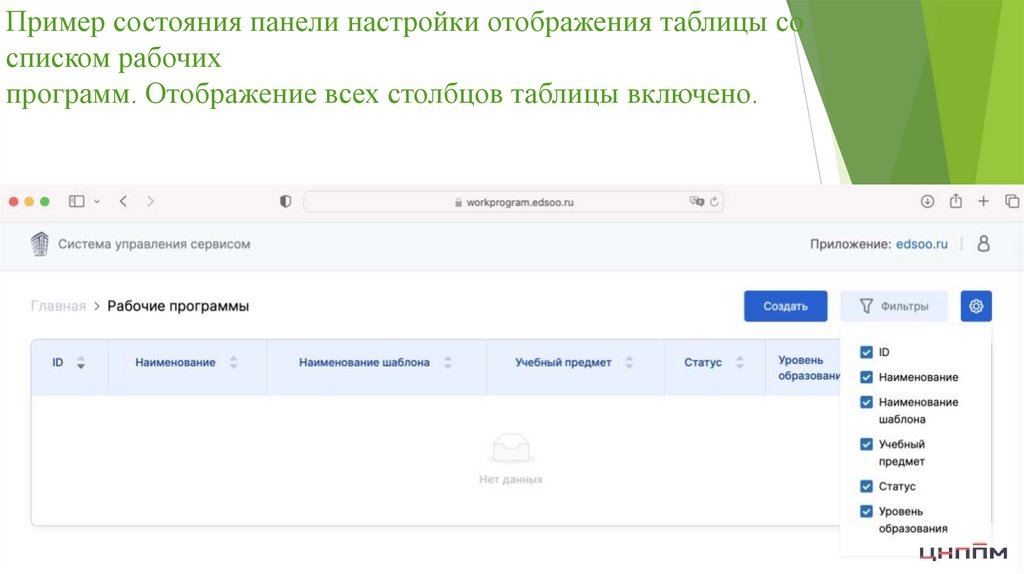 19. После перехода в сервис «Конструктор рабочих программ по учебным предметам» вам будет доступен экран следующего вида: