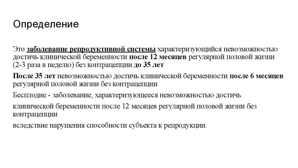 ОпределениеЭто заболевание репродуктивной системы характеризующийся невозможностью