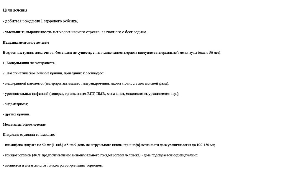 2. Патогенетическое лечение причин, приведших к бесплодию: