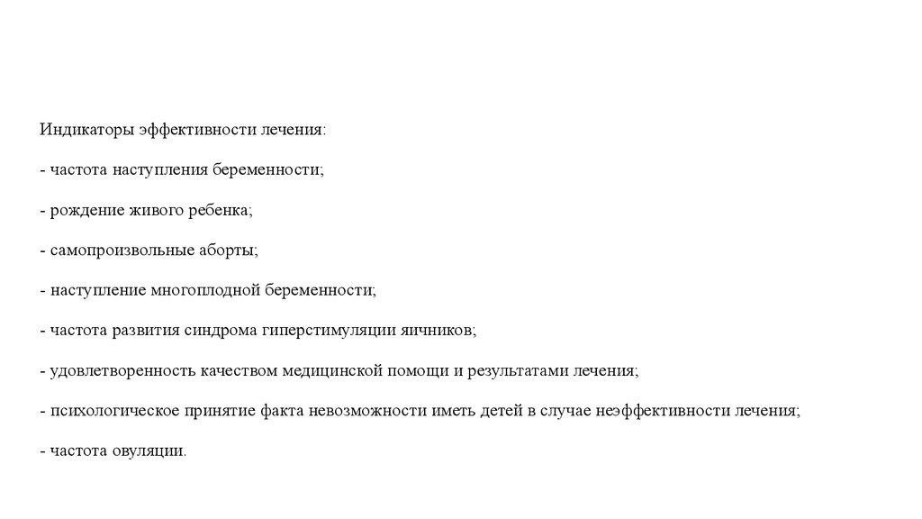 Индикаторы эффективности лечения:- частота наступления беременности;