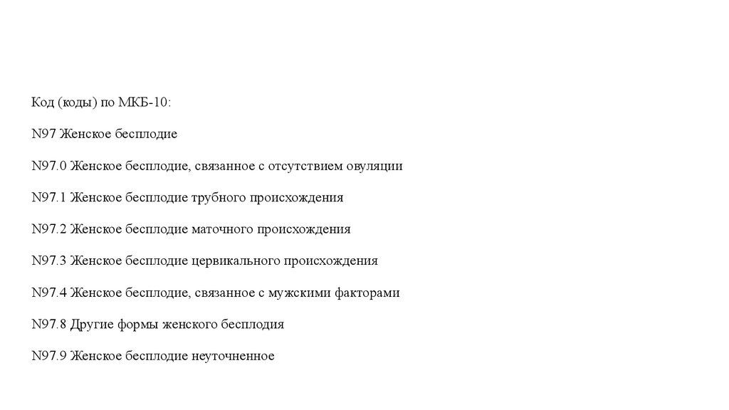 Код (коды) по МКБ-10:N97 Женское бесплодие