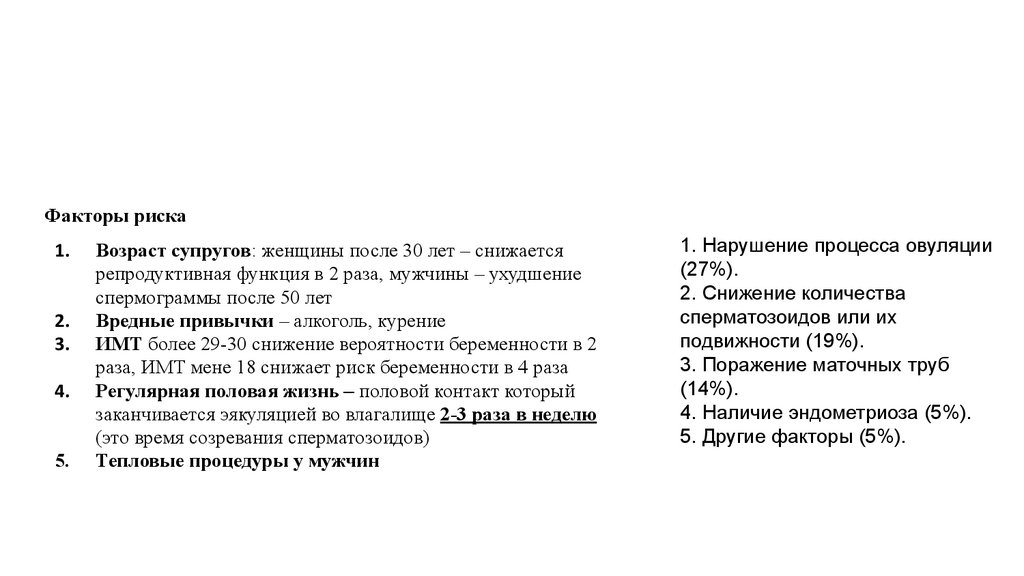 •первичное бесплодие - отсутствие беременности в анамнезе;