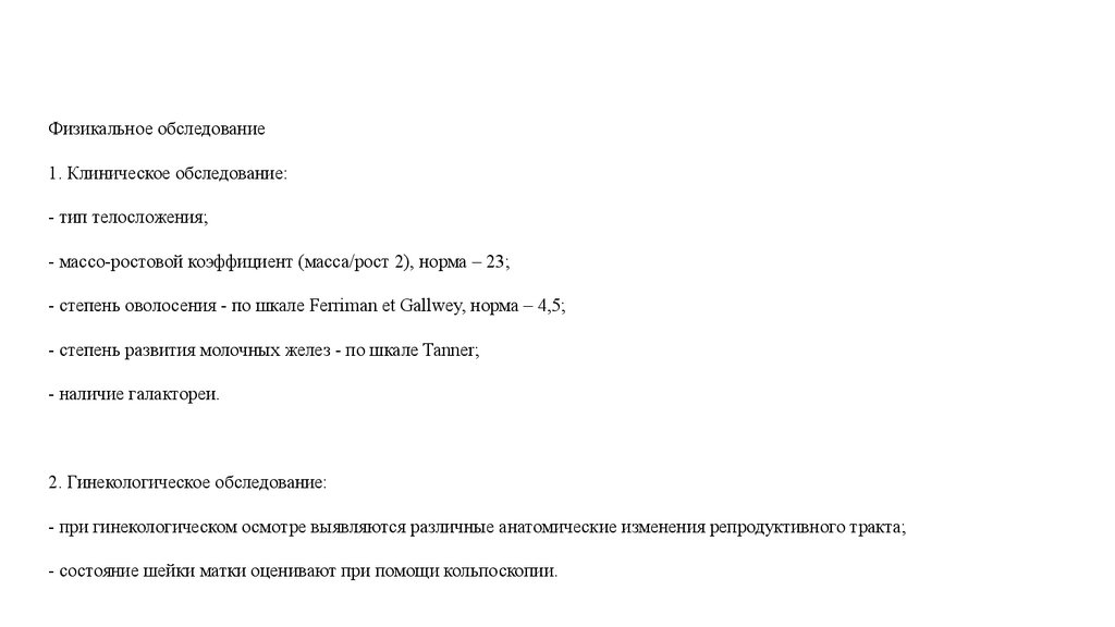 - степень оволосения - по шкале Ferriman et Gallwey, норма – 4,5;