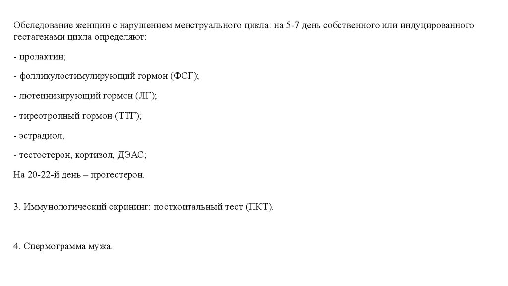 Обследование женщин с нарушением менструального цикла: на 5-7 день собственного или индуцированногогестагенами цикла определяют: