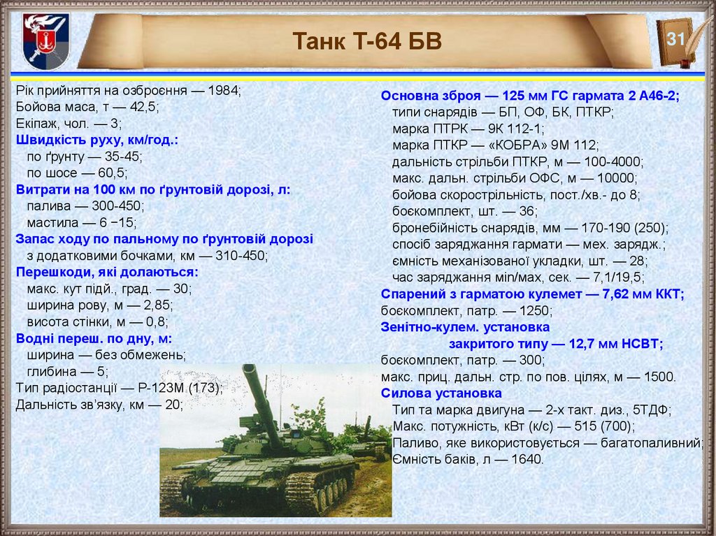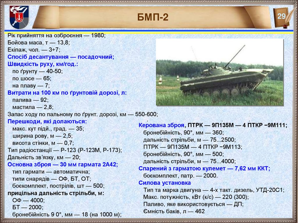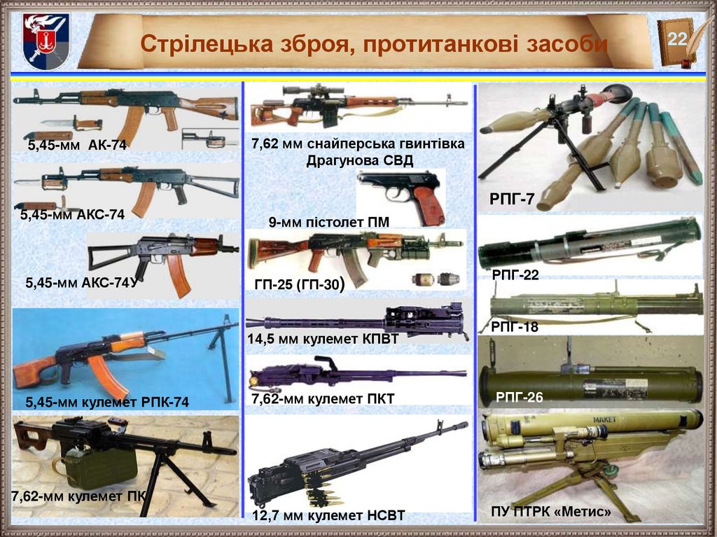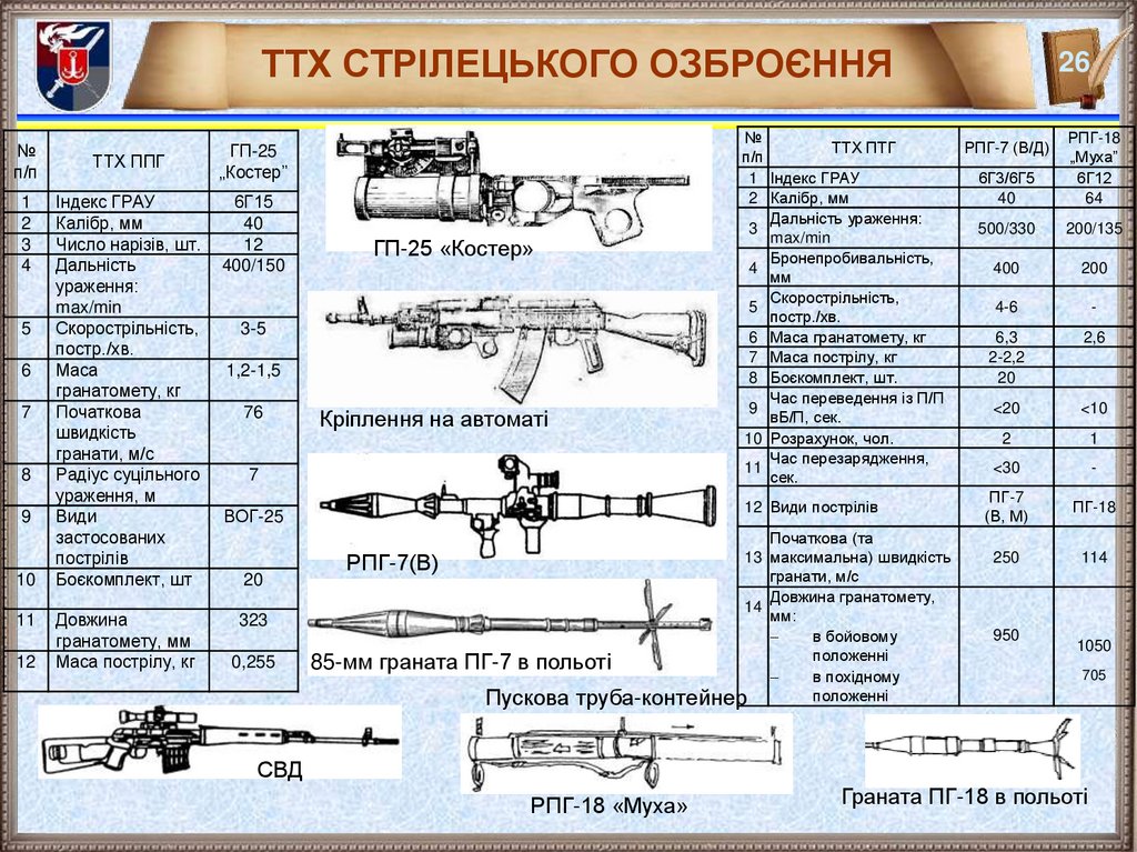 ● ОШС мвід, мв, мр, мб. ТТХ озбр.