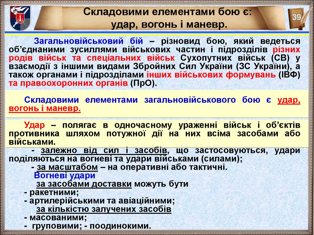 маневру; найменшу уразливість підрозділів від ударів усіх видів зброї