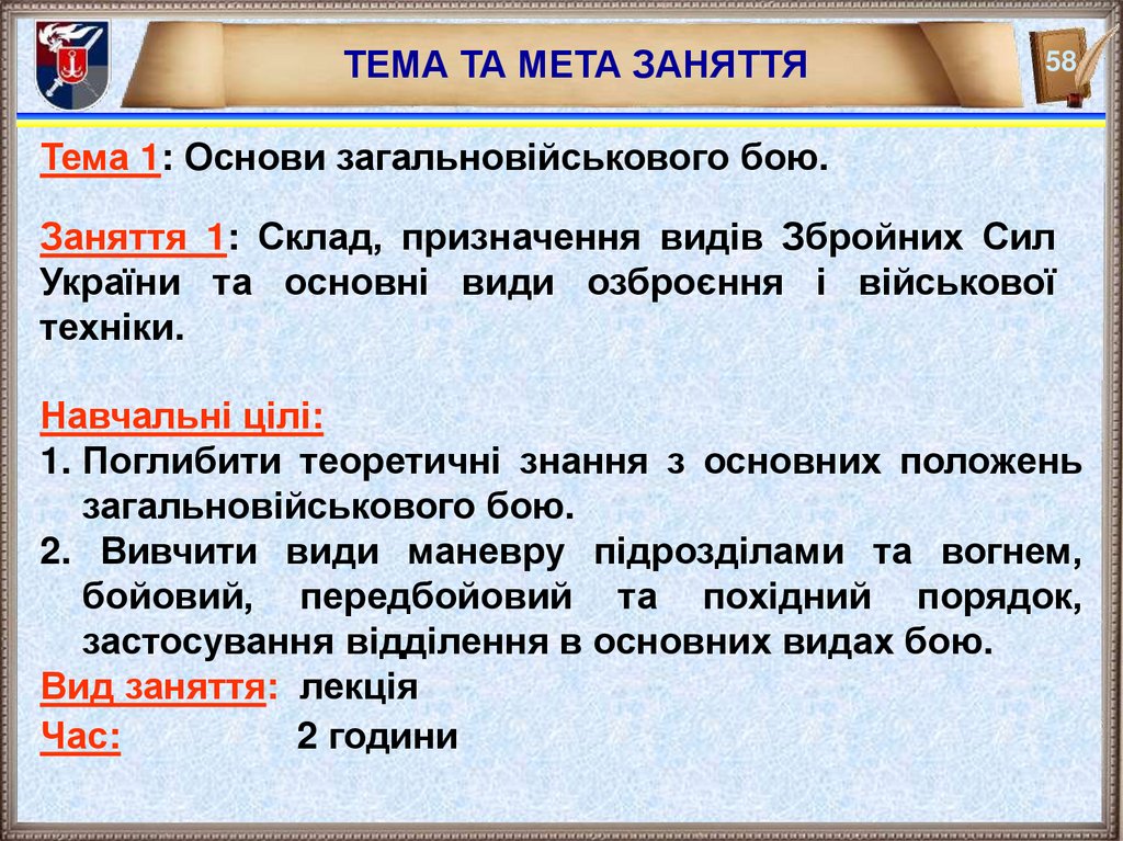 ТЕМА ТА МЕТА ЗАНЯТТЯ58