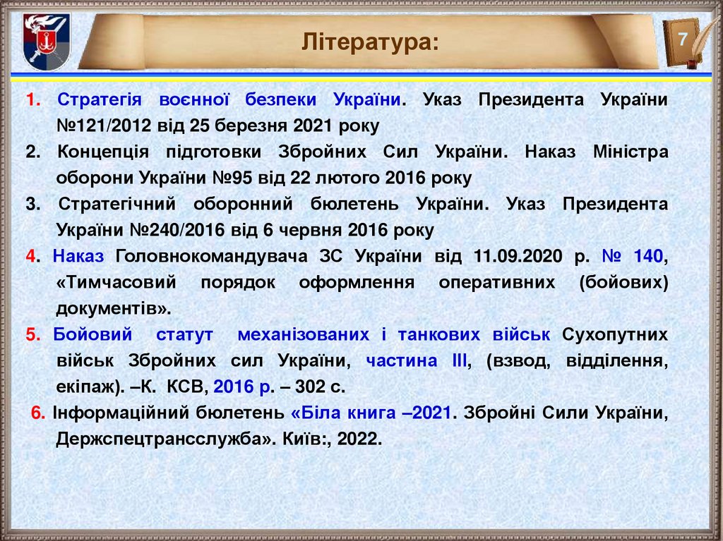 Література:1. Стратегія воєнної безпеки України. Указ Президента України