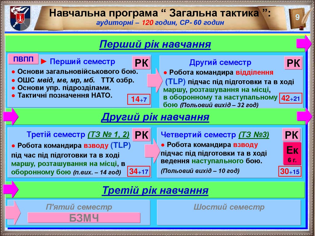 Навчальна програма “ Загальна тактика ”:аудиторні – 120 годин, СР- 60 годин