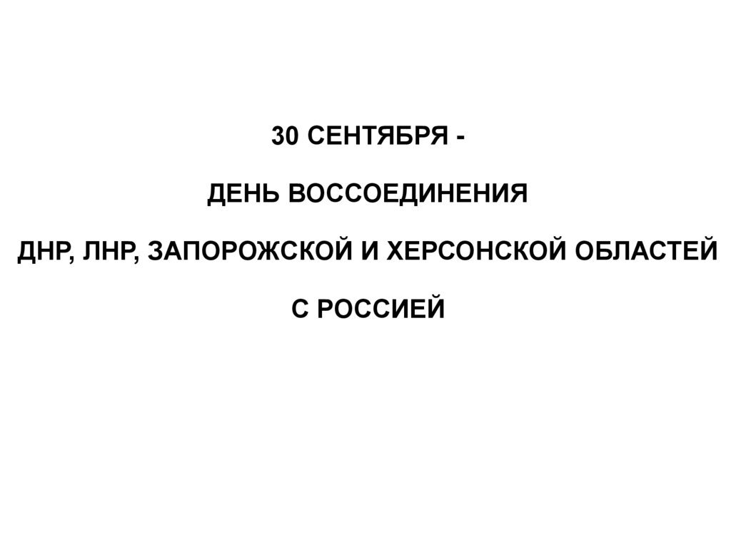 30 СЕНТЯБРЯ ДЕНЬ ВОССОЕДИНЕНИЯДНР, ЛНР, ЗАПОРОЖСКОЙ И ХЕРСОНСКОЙ ОБЛАСТЕЙ