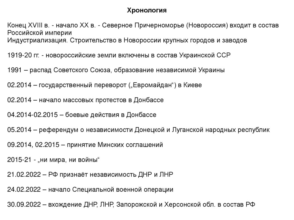 ХронологияКонец XVIII в. - начало XX в. - Северное Причерноморье (Новороссия) входит в состав