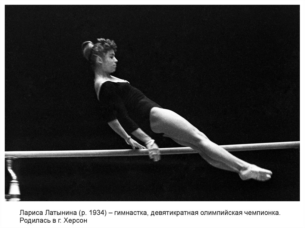 Лариса Латынина (р. 1934) – гимнастка, девятикратная олимпийская чемпионка.Родилась в г. Херсон
