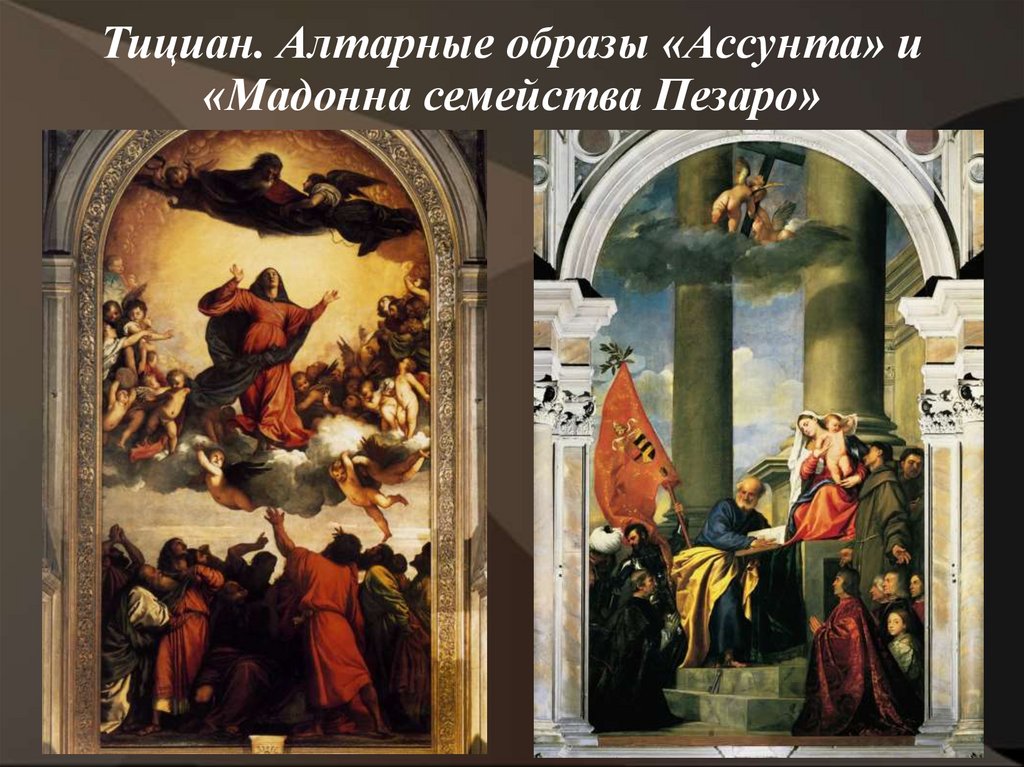 Тициан. Алтарные образы «Ассунта» и«Мадонна семейства Пезаро»