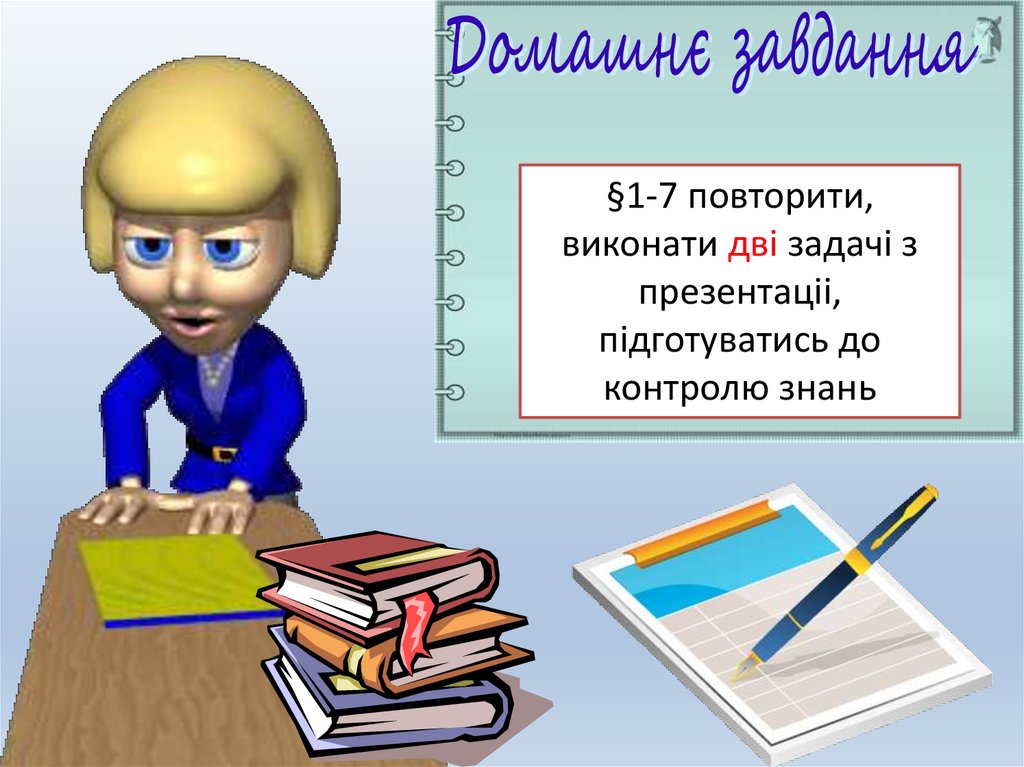 §1-7 повторити,виконати дві задачі з