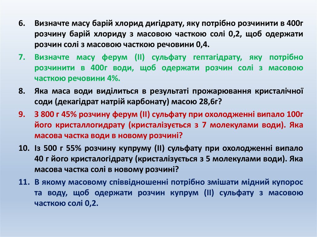 13. Особливість розрахункових задач з кристалогідратами