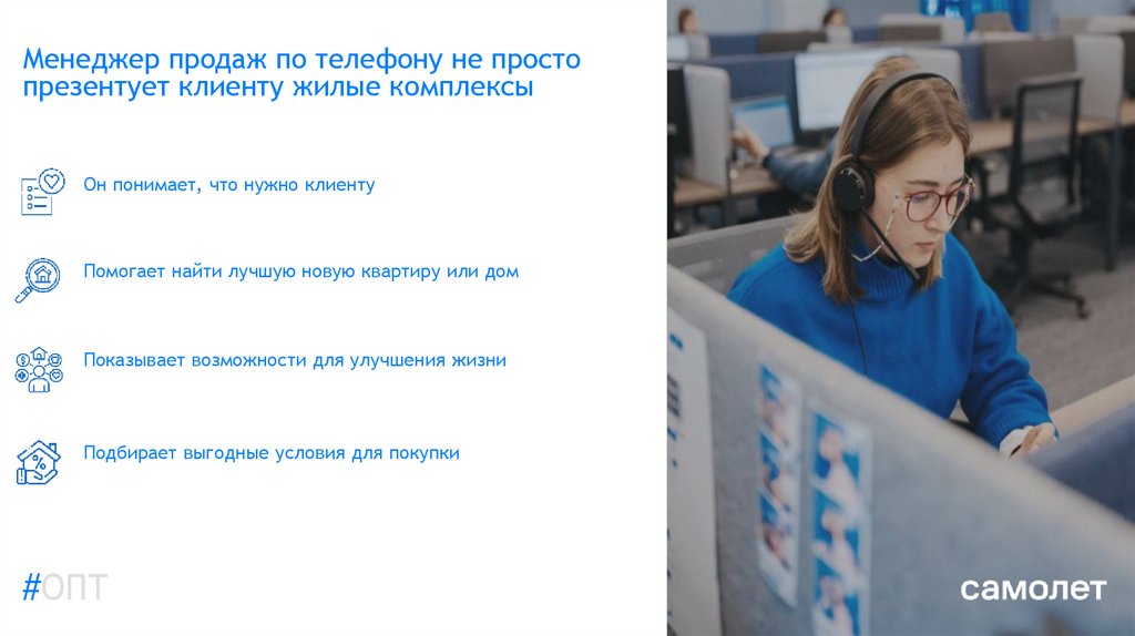 Менеджер продаж по телефону не простопрезентует клиенту жилые комплексы