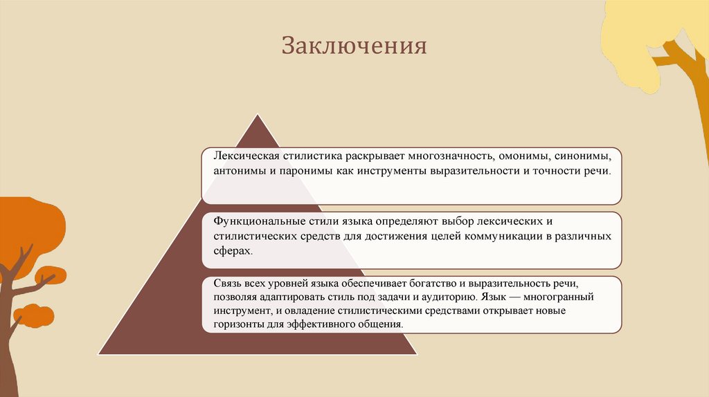 ЗаключенияЛексическая стилистика раскрывает многозначность, омонимы, синонимы,